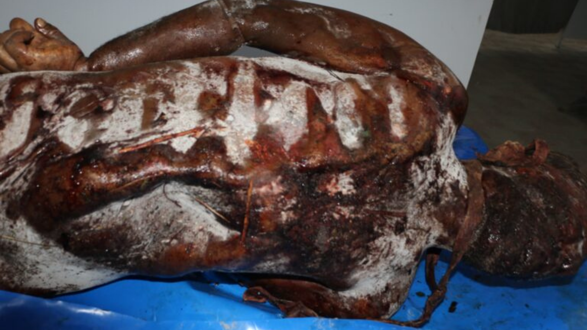 Şiddetli fiziksel işkenceye işaret eden kırıklar, yanıklar ve derin yaralar.