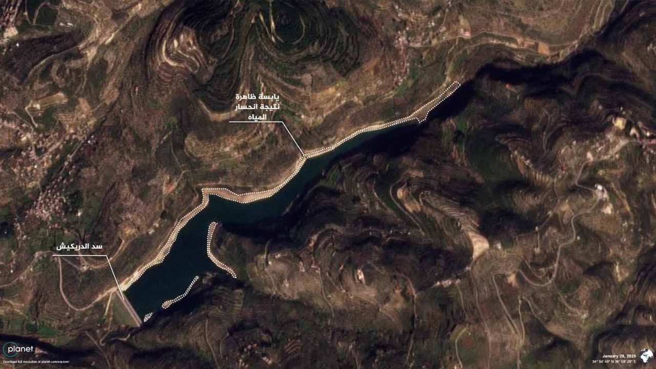 Suriye'nin kuzeybatısındaki Tartus ilinde bulunan Drekioh Barajı, haftalardır süren şiddetli yağışların ardından yıllar sonra ilk kez tam doluluğa ulaştı. Uydu görüntüleri, barajın maksimum seviyeye gelerek taştığını belgeledi.